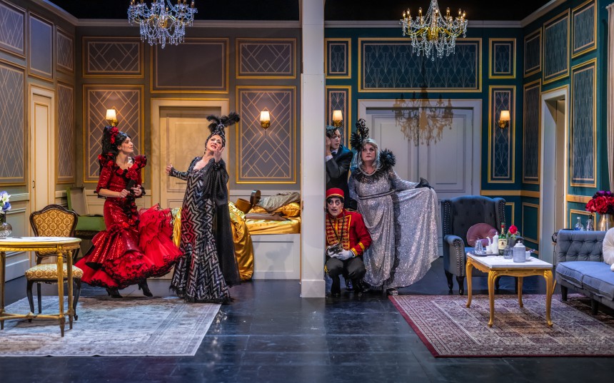 Komedijo, ki jo odlikujejo duhoviti dialogi, predvsem pa elementi bulvarne komedije, kot so preobleke, zamenjave oseb, hiter tempo in presenečenja za zaprtimi vrati, je v naši predstavi režirala Katja Pegan, ki velja za eno vodilnih režiserk komedij pri nas.