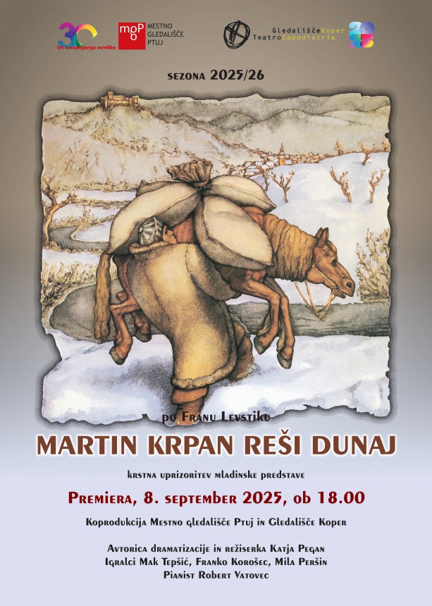 Režiserka Katja Pegan, ki je hkrati tudi avtorica dramatizacije in se osredotoča na prvi – bolj znani – del Levstikove pripovedke o Martinu Krpanu z Vrha pri Sveti Trojici, ki se konča z Martinovo zmago nad Brdavsom, je besedilo priredila za tri igralce, ki odigrajo več vlog, in pianista, k sodelovanju pa povabila še kostumografa in scenografa Andreja Vrhovnika in oblikovalca svetlobe Jako Varmuža. Krpana, namenjenega učencem tretje triade osnovnih šol, bomo septembra letos premierno najprej uprizorili na Ptuju, januarja prihodnje leto pa tudi v Kopru.